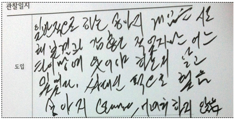 처음에는 내가 할 수 있을까! 안할까 못한다고 할까! 그랬는데 하다 보니 하겠더라고... 언니들도 잘 했는데, 계속 하다 보니까 욕심이 생기더라고요. 그래서 저번에 선생님한테 젊은 사람들이 하는 것도 한번 해볼까하고 말씀드렸던 거예요. 그런데 물론 하면 잘은 못하겠지만, 하는 것이 의의가 있는 거잖아요. 이거 끝나면 선생님 계속 오시고 한 번 더 했으면 해요. 더 어려운 것도 선생님이 잘 아시잖아요.